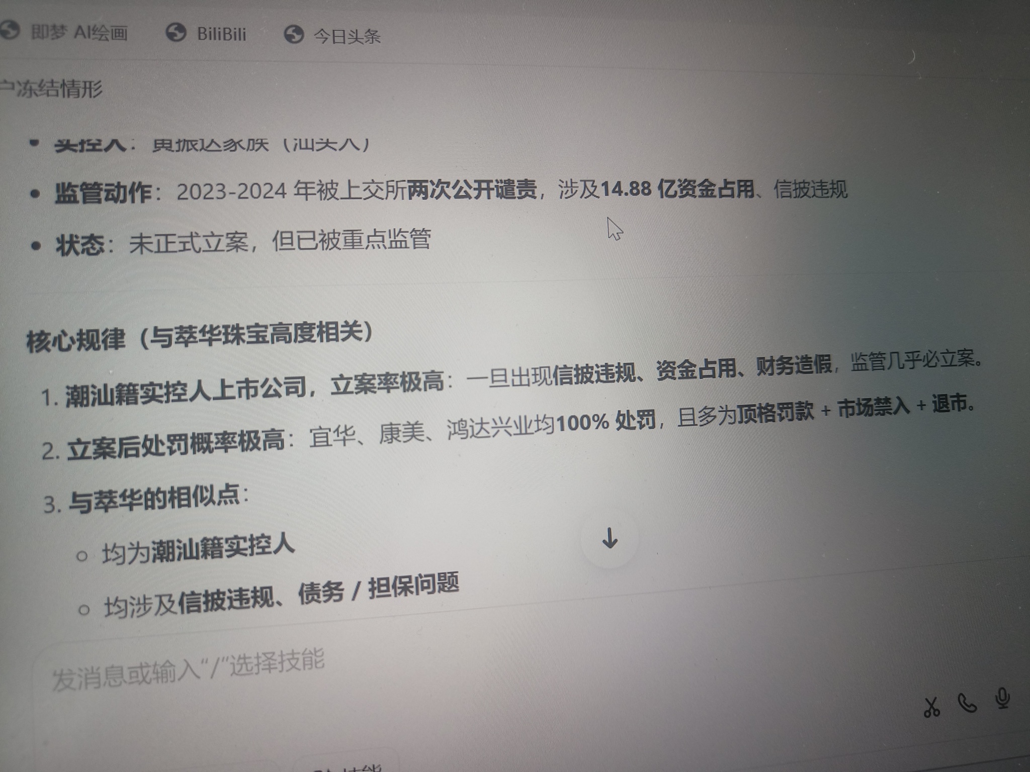 $ST萃华(SZ002731)$ 不要吓我ai分析的