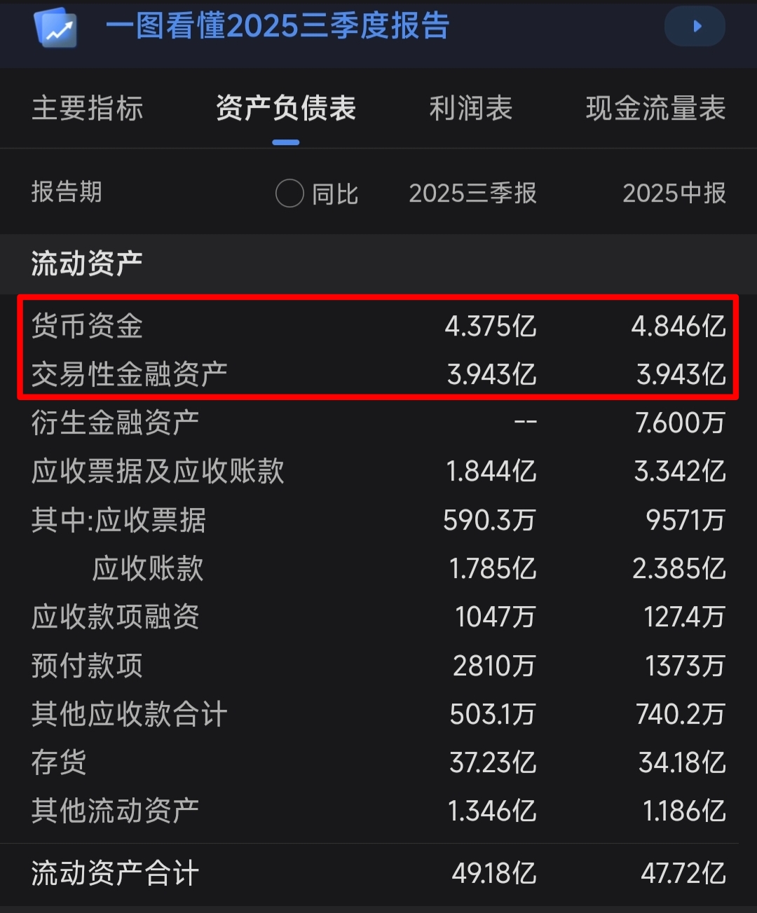 估计资产负债表有问题,账面上现金和交易性金融资产都是硬通货,合计有8个多亿,银行