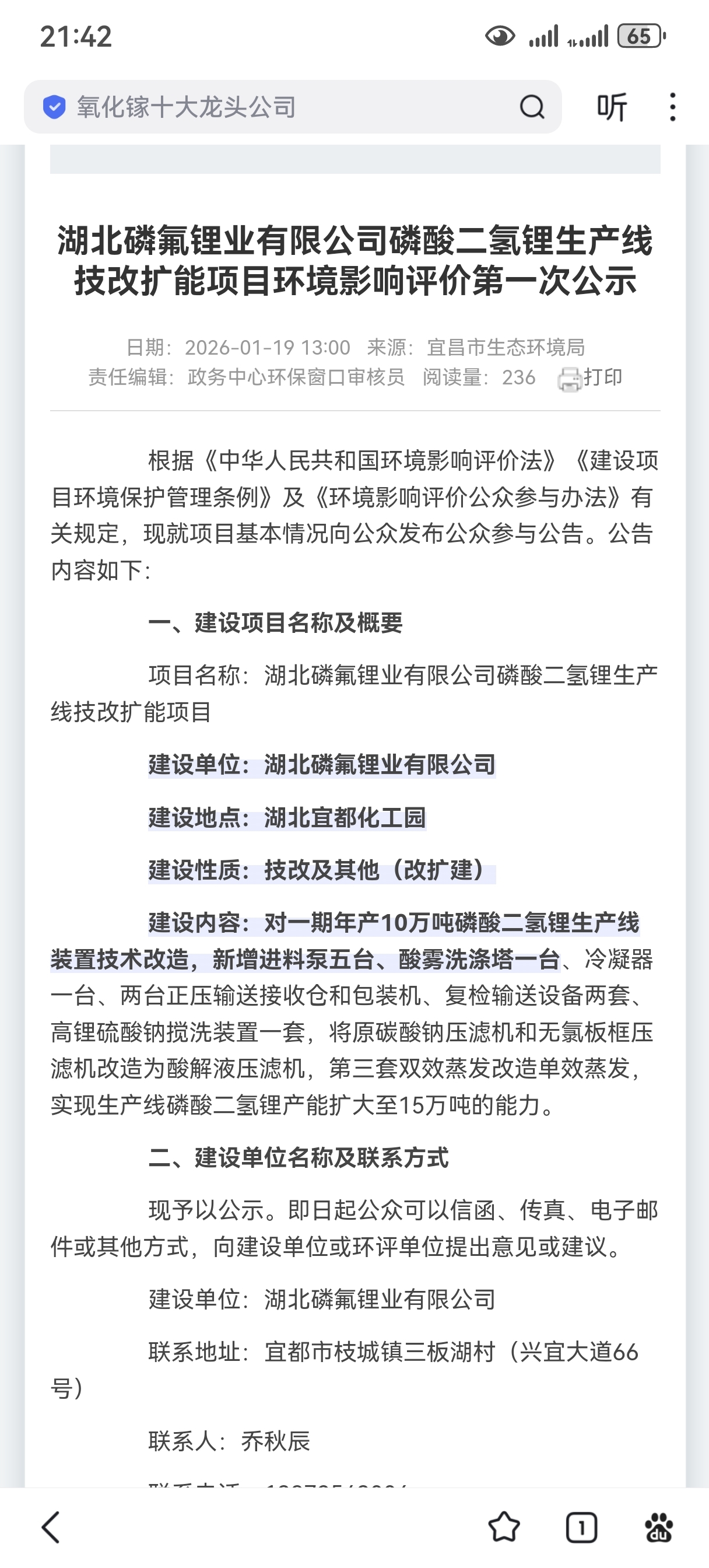 $ST萃华(SZ002731)$ 扩产15万吨,年中扩产20万吨!磷酸二氢锂!估计卖2%的股权就是为了让兴发集团先拿钱扩产吧!