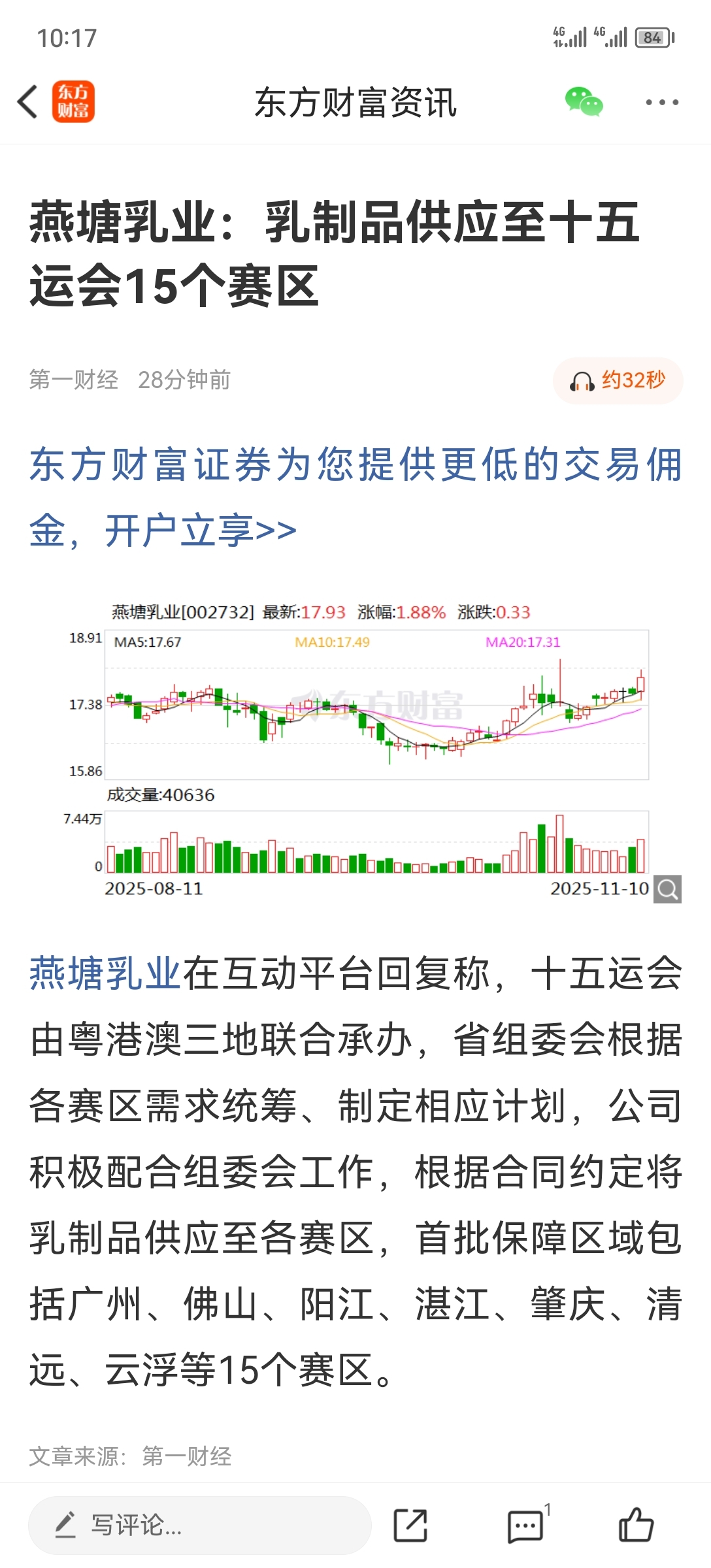 $燕塘乳业(SZ002732)$ $香农芯创(SZ300475)$ $中国中免(SH601888)$ 全运会概念,大消费概念,静待起飞,燕塘乳业!