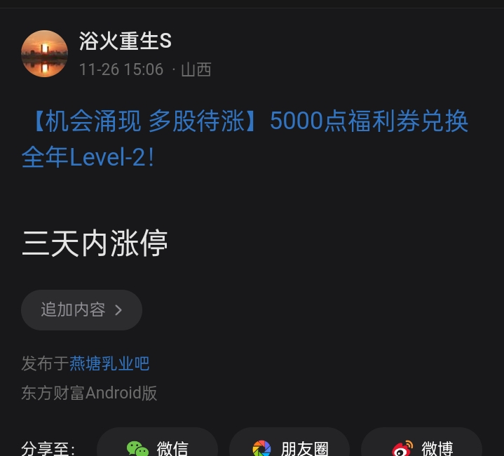 温馨提示: 1.根据《证券法》规定,禁止编造、传播虚假信息或者误导性信息,扰乱证券市场;2.用户在本社区发表的所有资料、言论等仅代表个人观点,与本网站立场无关,不对您构成任何投资建议。用户应基于自己的独立判断,自行决定证券投资并承担相应风险。《东方财富社区管理规定》