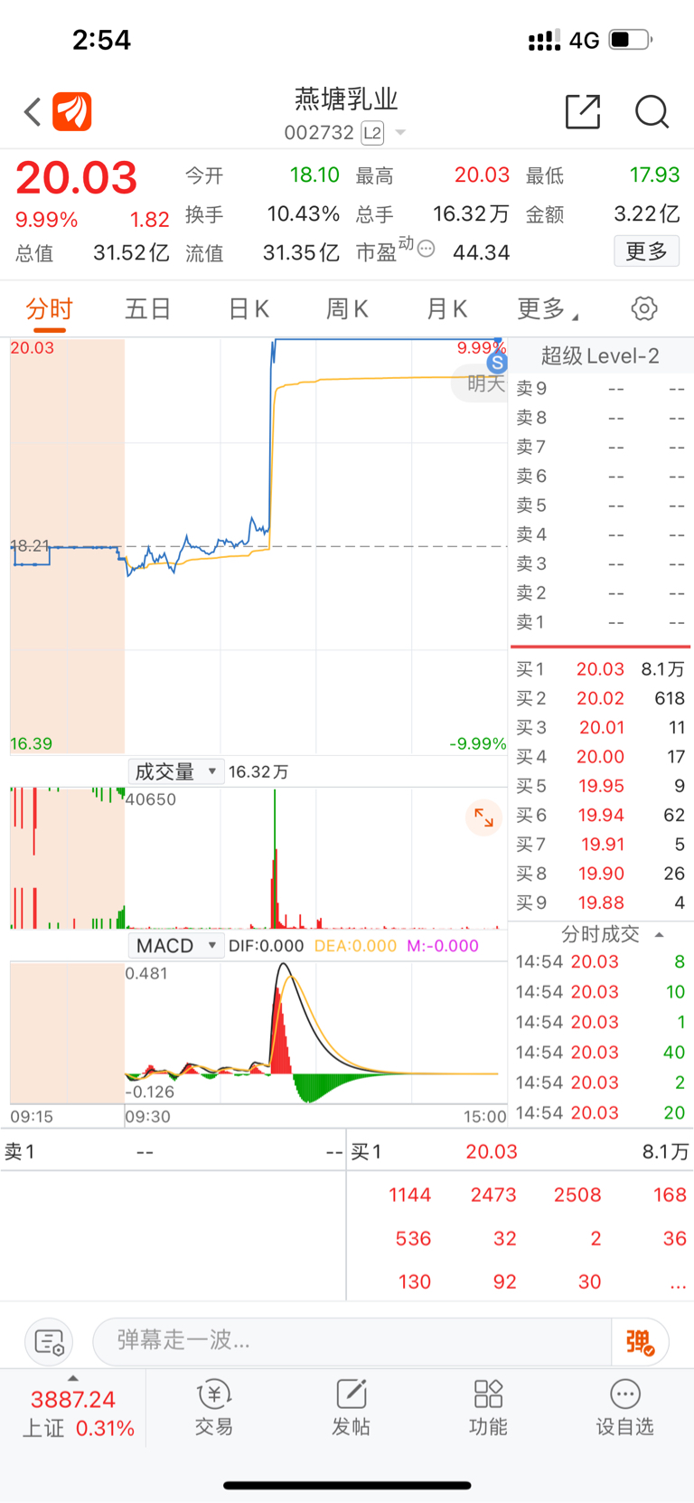 $燕塘乳业(SZ002732)$ 先卖100股,免得下周又跑不掉