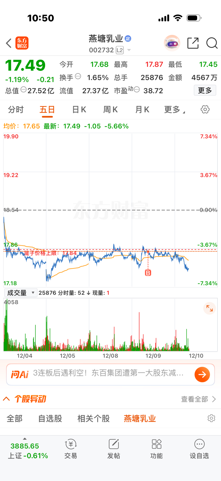 $燕塘乳业(SZ002732)$ 只是技术性调整,不要慌