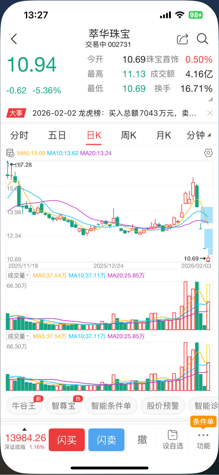 连吃四板,斩仓转到中国黄金了~必须打个漂亮的翻身仗…兄弟们,能不能有奇迹出现?