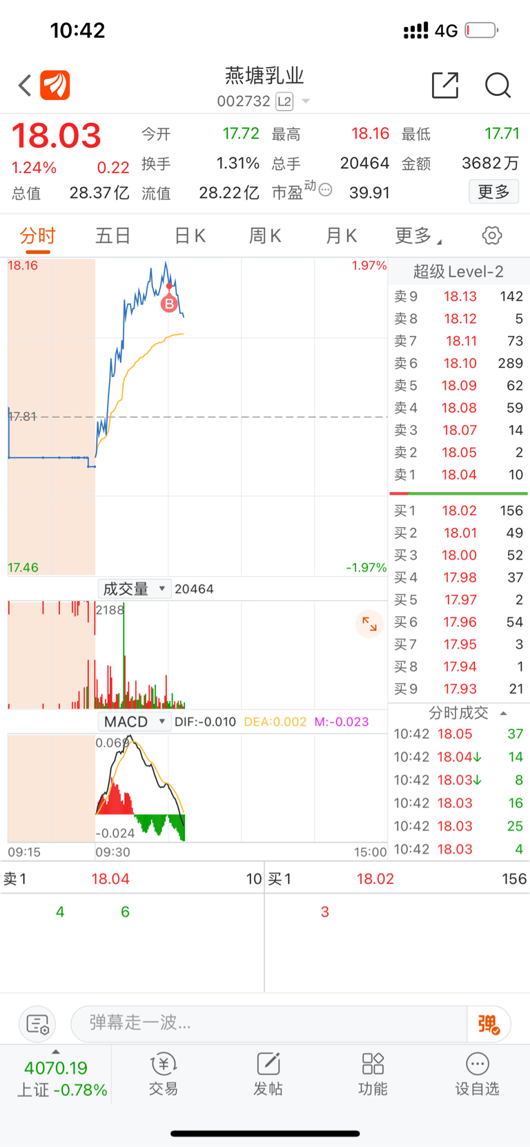 $燕塘乳业(SZ002732)$ 对不起兄弟们,我这500股把它买崩了