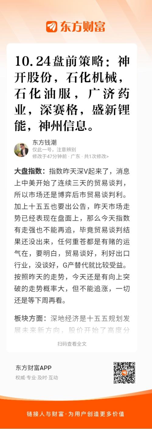 神开股份(002278): 它是最强的深地经济概念,昨天板块严重分化,目前只有两个四连板高标,后排的断板严重,要是今天这两个高标再次成功连板,后排的向上修复预期就比较强。神开今天继续连板的概率还是比较大,盘中小分歧调整耐心持股。调整到水下就要考虑是否出来。$神开股份(SZ002278)$