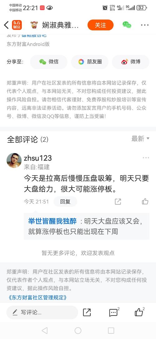 温馨提示: 1.根据《证券法》规定,禁止编造、传播虚假信息或者误导性信息,扰乱证券市场;2.用户在本社区发表的所有资料、言论等仅代表个人观点,与本网站立场无关,不对您构成任何投资建议。用户应基于自己的独立判断,自行决定证券投资并承担相应风险。《东方财富社区管理规定》