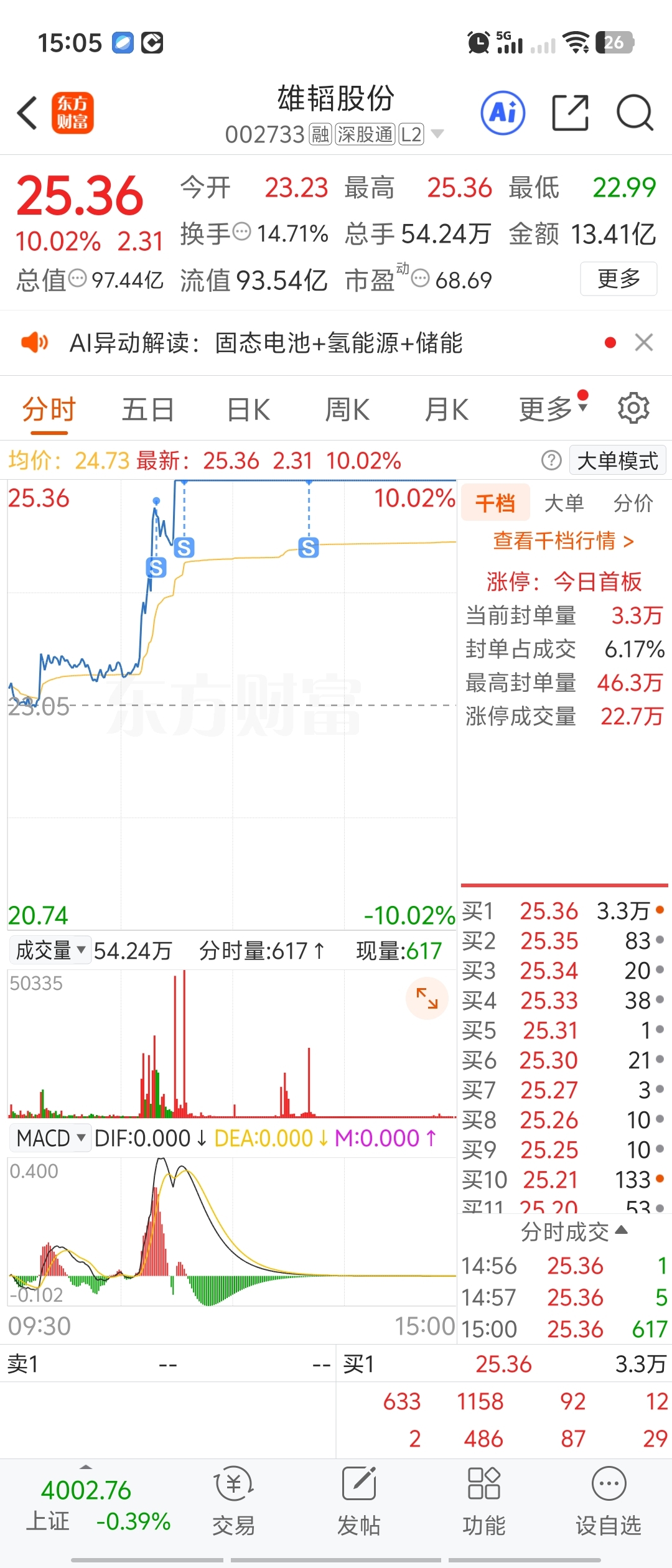 $雄韬股份(SZ002733)$ 15000股被主力骗走了!这个主力牛啊!
