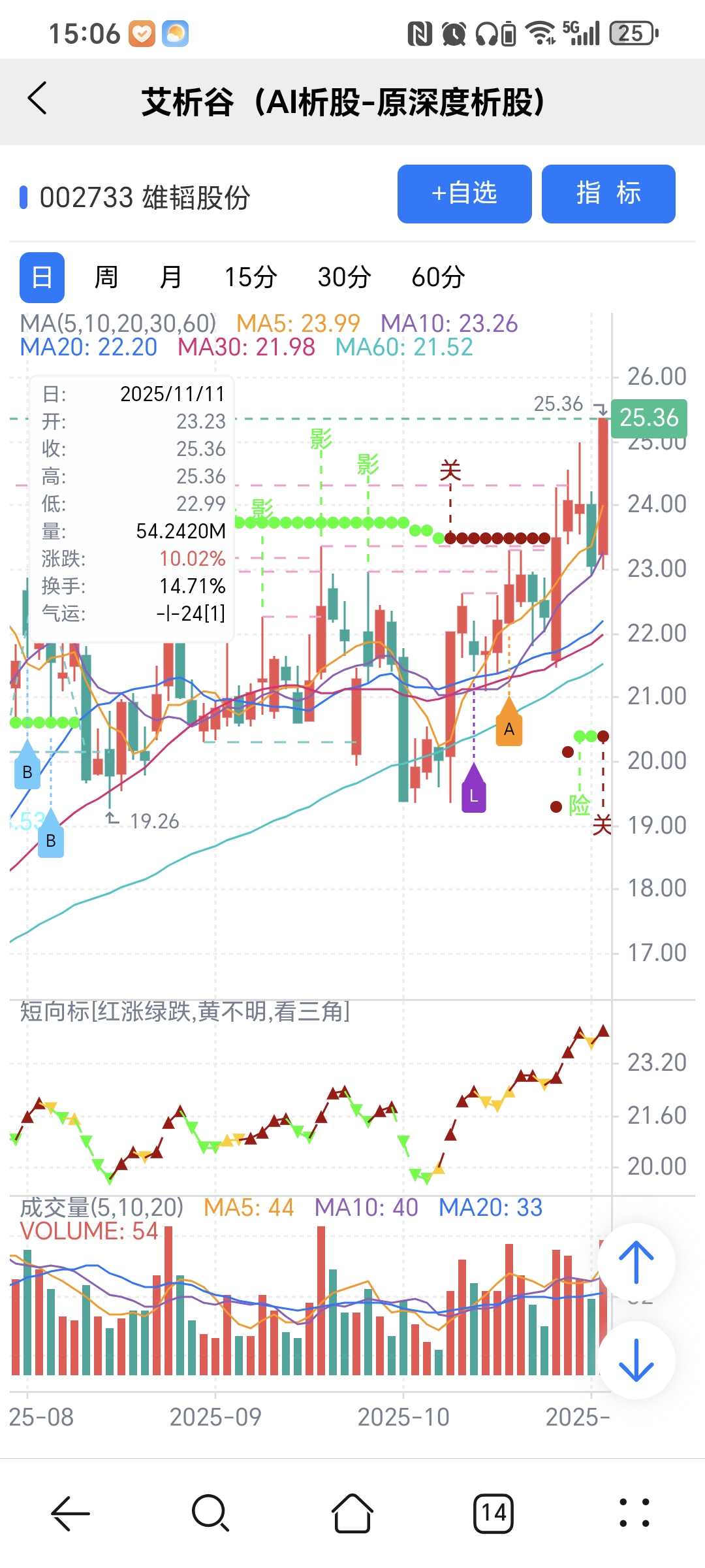 图中A、B、L 关注标记是对应AI选股模型当天下午2点多给出。