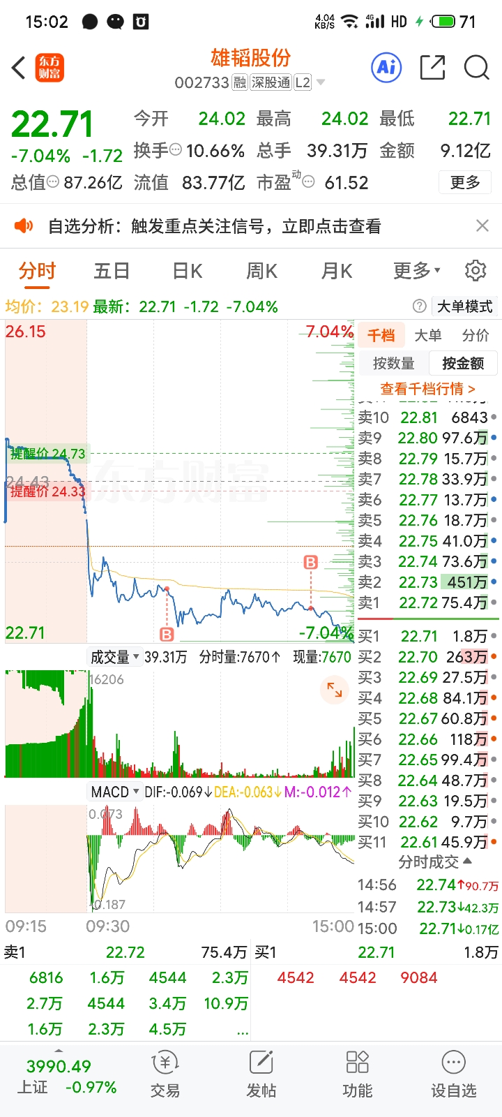 $雄韬股份(SZ002733)$ 我不相信星期一不反弹