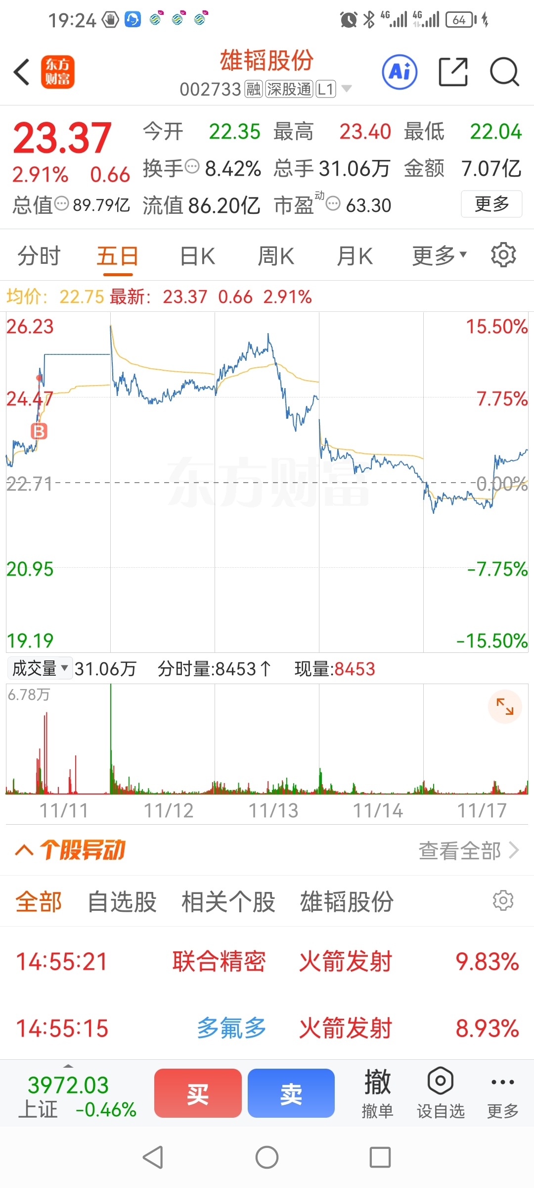 $雄韬股份(SZ002733)$ 分时看是雄韬股份拉升了天际股份才跟的,而创业板天力锂能比雄韬股份拉的更早一点,我成本24.9,这次只要打出新高我就走,不分析它了。这股和我无缘。这周不创出新高,我和老庄没完