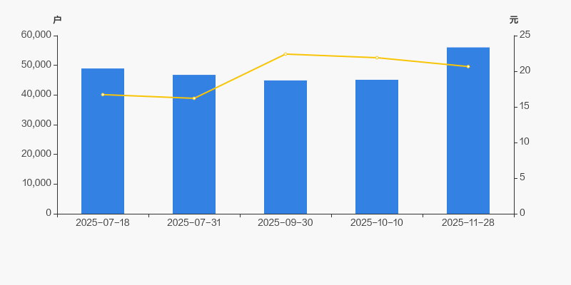 2025年7月18日至今,公司股东户数显著增长,区间涨幅为14.50%。2025年7月18日至2025年11月28日区间股价上涨23.56%。