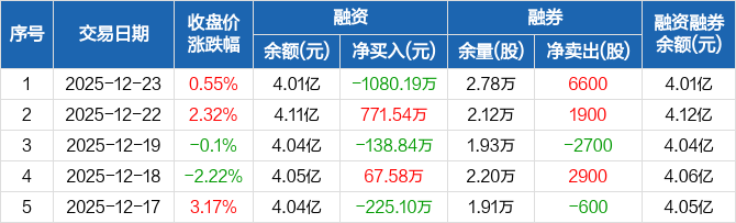 雄韬股份:融资净偿还1080.19万元,融资余额4.01亿元(12-23)