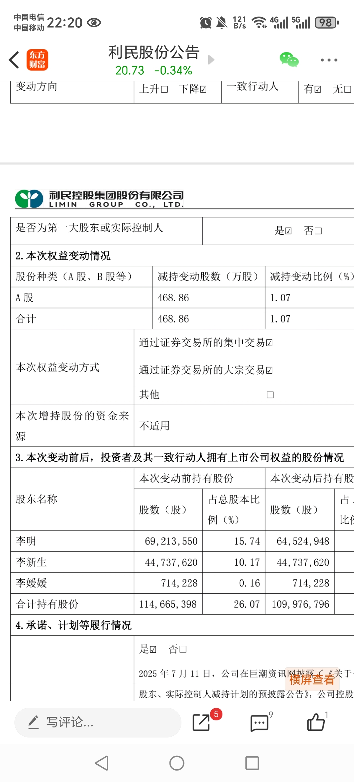 $利民股份(SZ002734)$ 第一股东减持,这瓜有点大