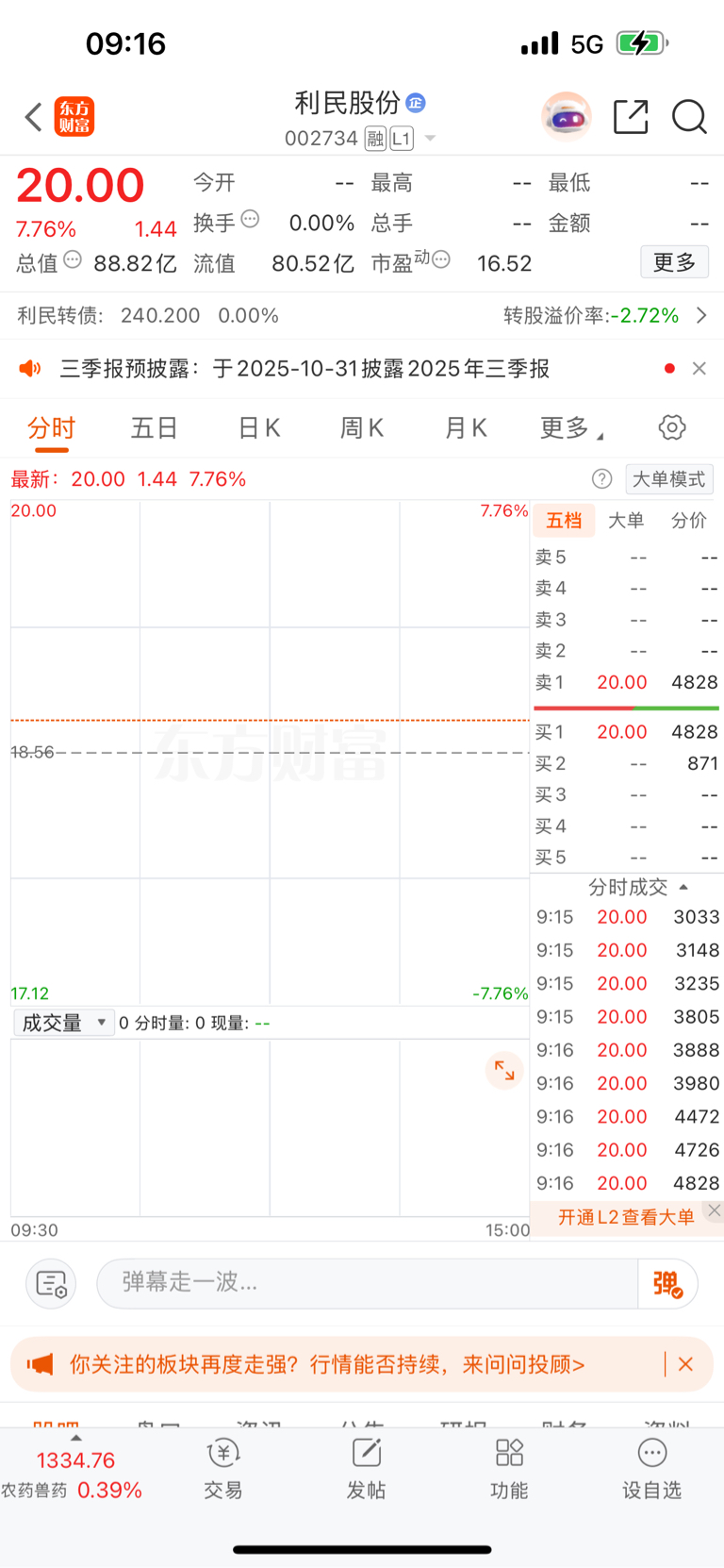 $利民股份(SZ002734)$ 我帮你们截图了,就知道一会就没了。