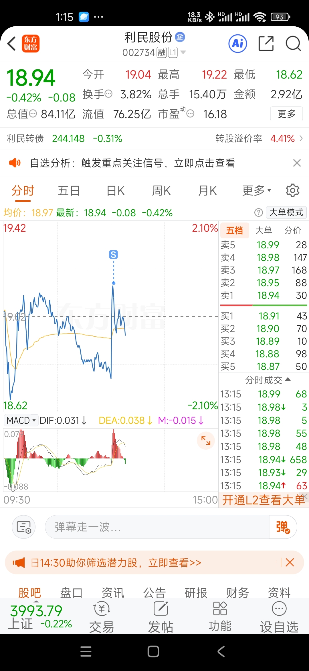 $利民股份(SZ002734)$ 大盘情况不稳定,没亏本,赚个合饭钱,先走了