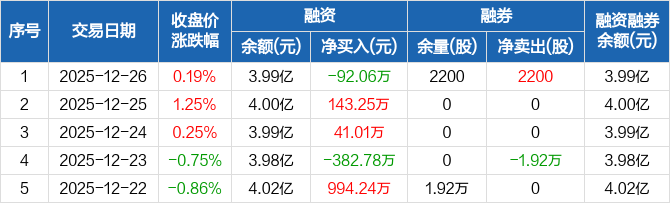 利民股份:融资净偿还92.06万元,融资余额3.99亿元(12-26)