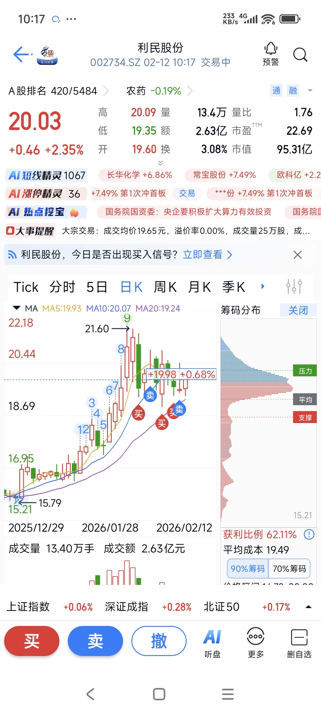 $利民股份(SZ002734)$ 每天冲高回落!