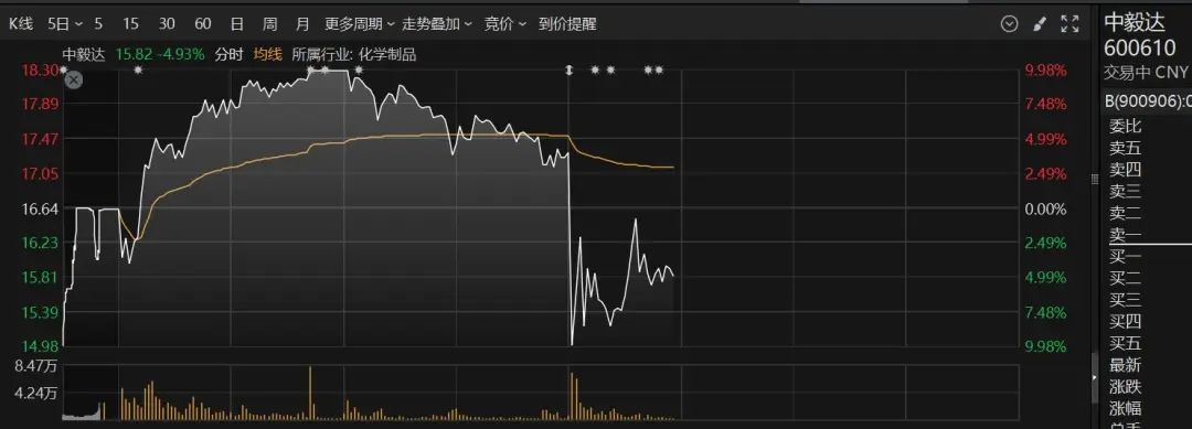中毅达午后开盘即大幅跳水,一度触及跌停,该股早盘一度封涨停,截至发稿,跌幅收窄,目前成交额超33亿元。