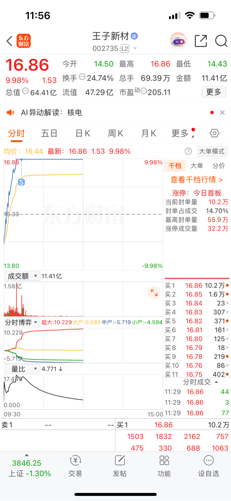 $王子新材(SZ002735)$ 逆势涨停不成妖就成狗