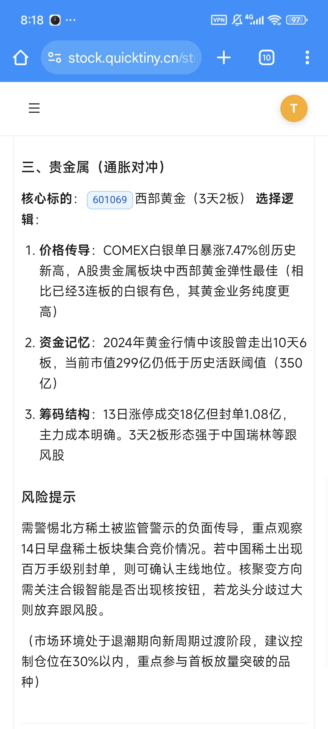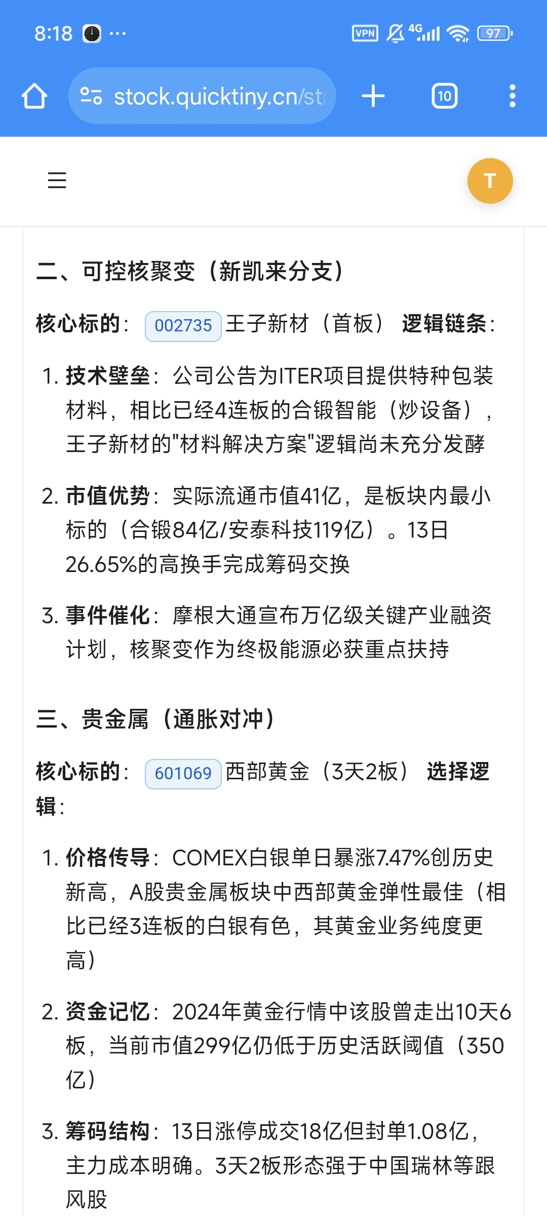 $王子新材(SZ002735)$$西部黄金(SH601069)$