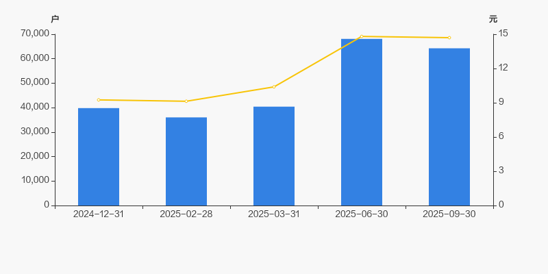 2024年12月31日至今,公司股东户数显著大幅增长,区间涨幅达61.42%。2024年12月31日至2025年9月30日区间股价上涨58.84%。