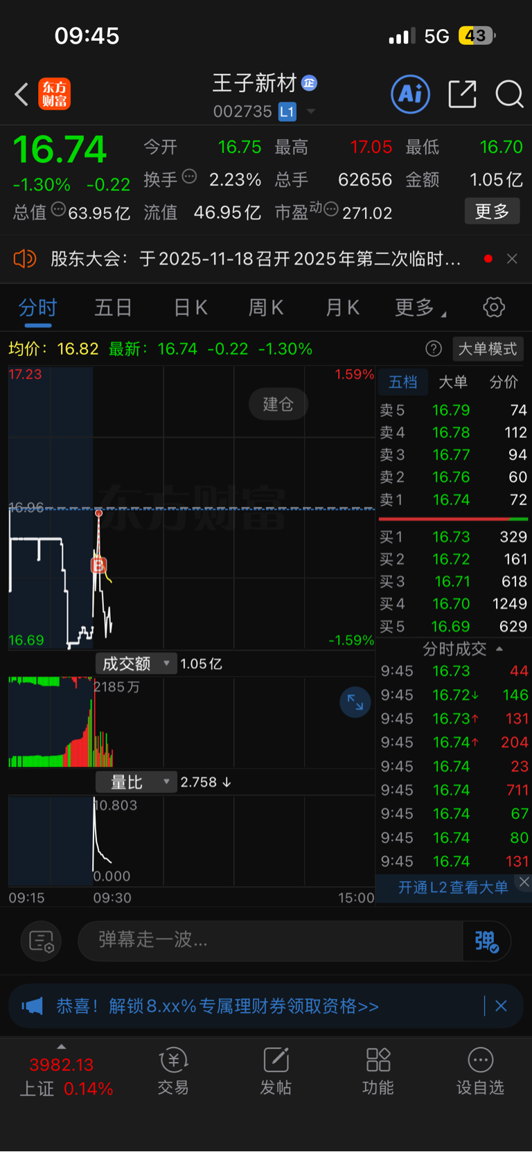 $王子新材(SZ002735)$ 略微出手就是巅峰