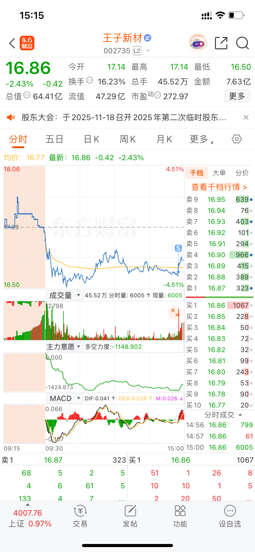 $王子新材(SZ002735)$ 好像不适合玩股票,大盘上4000我一直亏