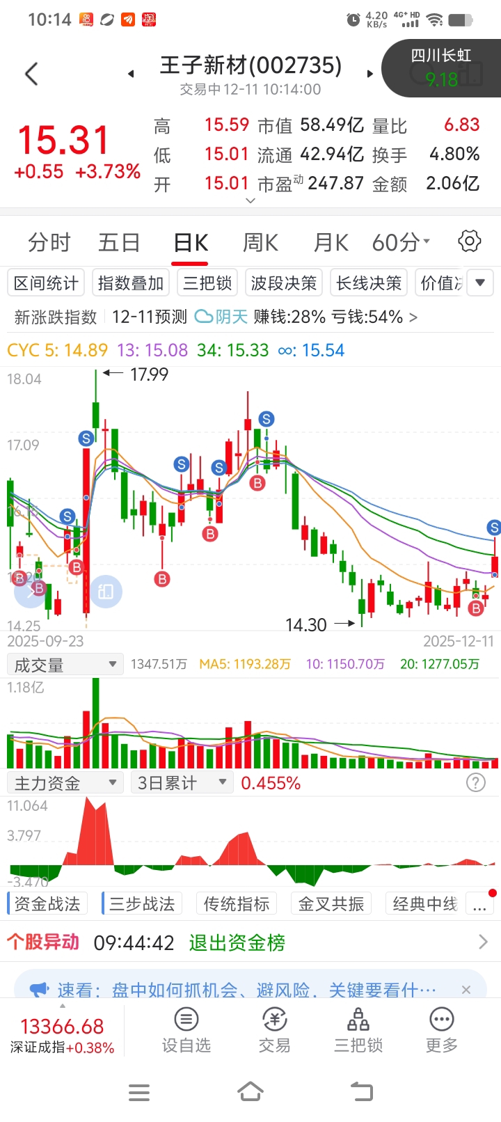 $王子新材(SZ002735)$ 操作失误,成本做成负数了的,手忙脚乱给清仓了