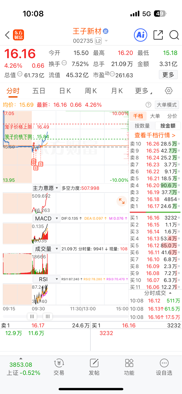 $王子新材(SZ002735)$ 好久没拿过涨停了!看看今天有没有机会
