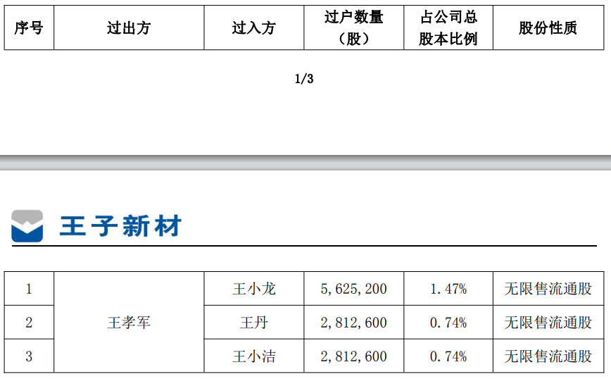 王子新材称,本次权益变动,不会导致公司控股股东及实际控制人发生变更,不会影响公司的治理结构和持续经营,亦不会对公司日常经营活动产生不利影响。自本次继承(非交易过户)完成之日起,王小龙、王丹、王小洁将严格遵守《公司法》《证券法》等法律法规、部门规章及规范性文件中关于股份买卖的相关规定。