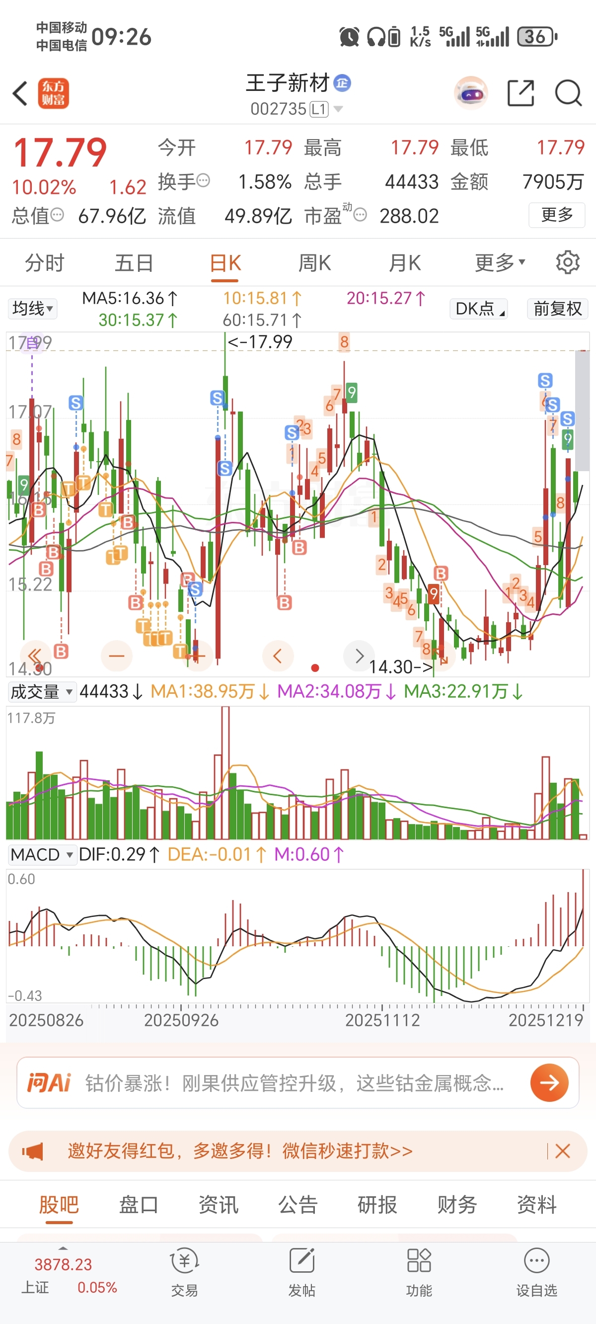 温馨提示: 1.根据《证券法》规定,禁止编造、传播虚假信息或者误导性信息,扰乱证券市场;2.用户在本社区发表的所有资料、言论等仅代表个人观点,与本网站立场无关,不对您构成任何投资建议。用户应基于自己的独立判断,自行决定证券投资并承担相应风险。《东方财富社区管理规定》