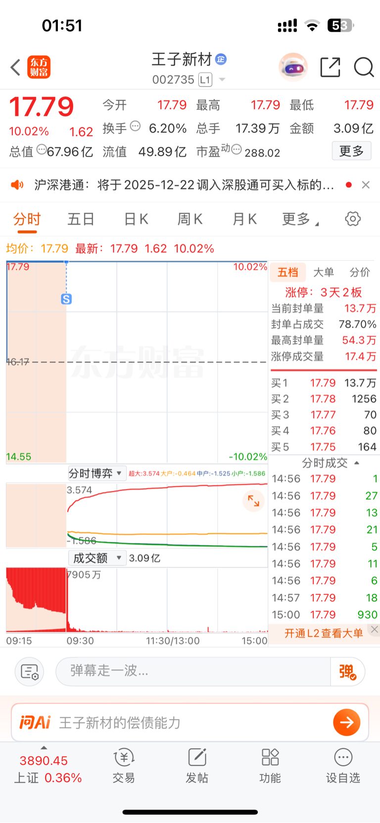 $王子新材(SZ002735)$ 能不能把筹码还给我,挂的隔夜单,早上睡过头成交了。呜呜呜