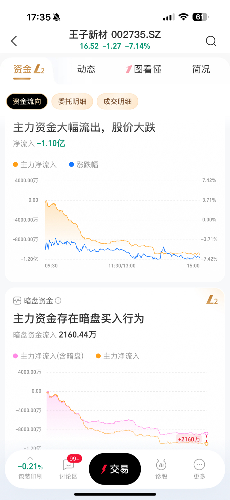 $王子新材(SZ002735)$ 今天唯一好的是暗盘资金是流入的,说明什么
