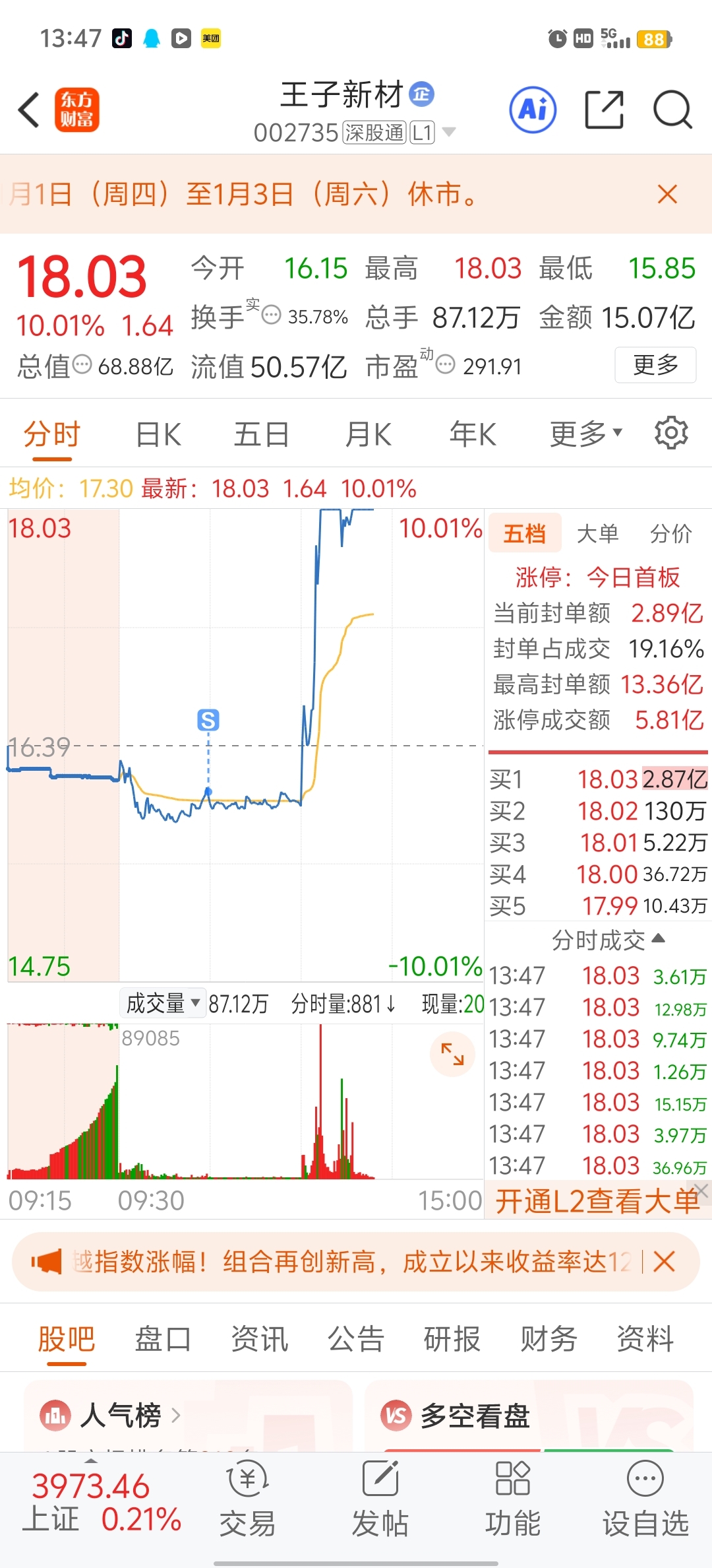 $王子新材(SZ002735)$