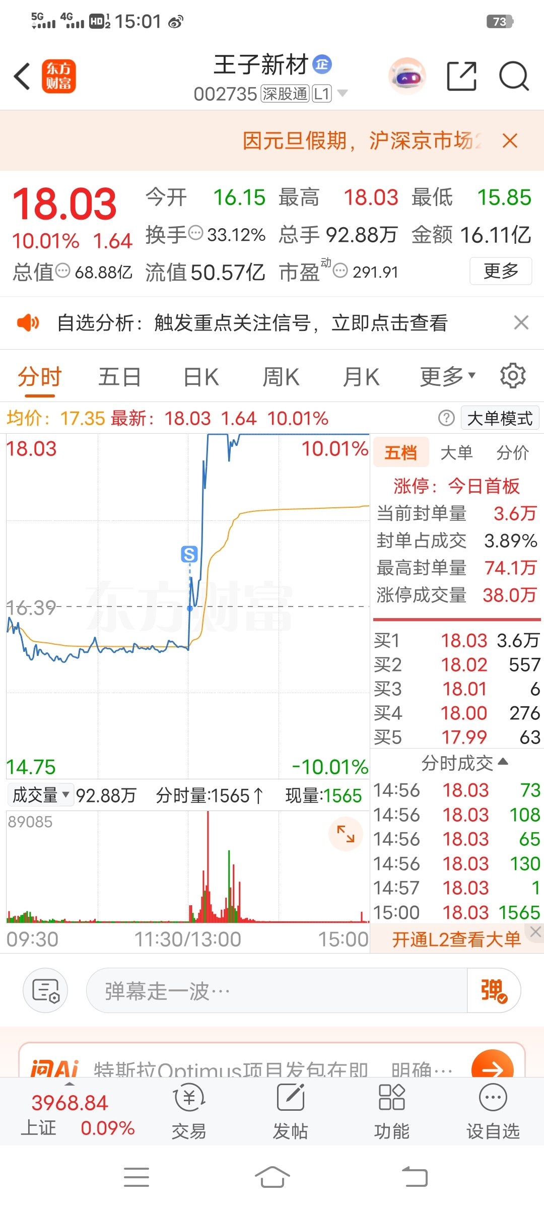 $王子新材(SZ002735)$