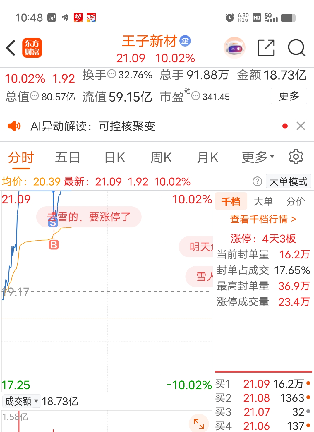 $王子新材(SZ002735)$ 炸板前三秒卖掉 三十秒内20.66接回 全仓T 千万不要再炸 我们小资金经不起大的折腾
