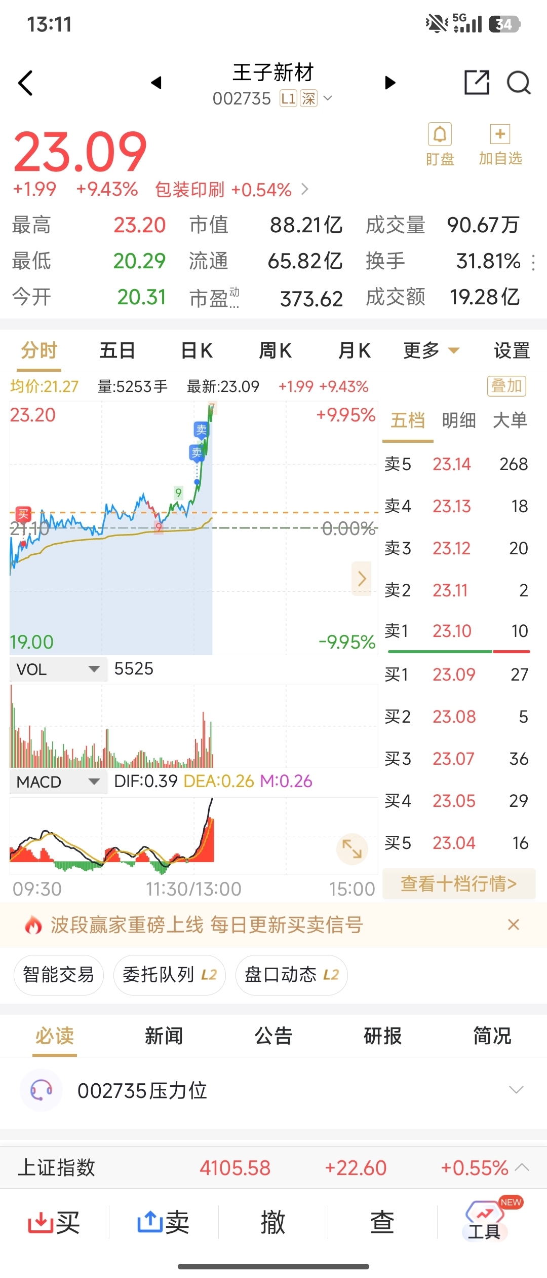 $王子新材(SZ002735)$ 看好,下周继续低买