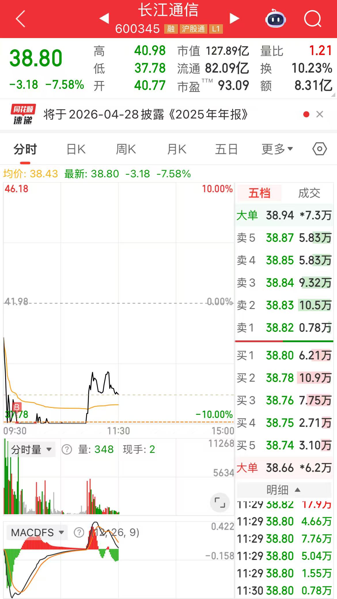 。还好还好,长江通信最后打开了,希望下午别跌回去哈