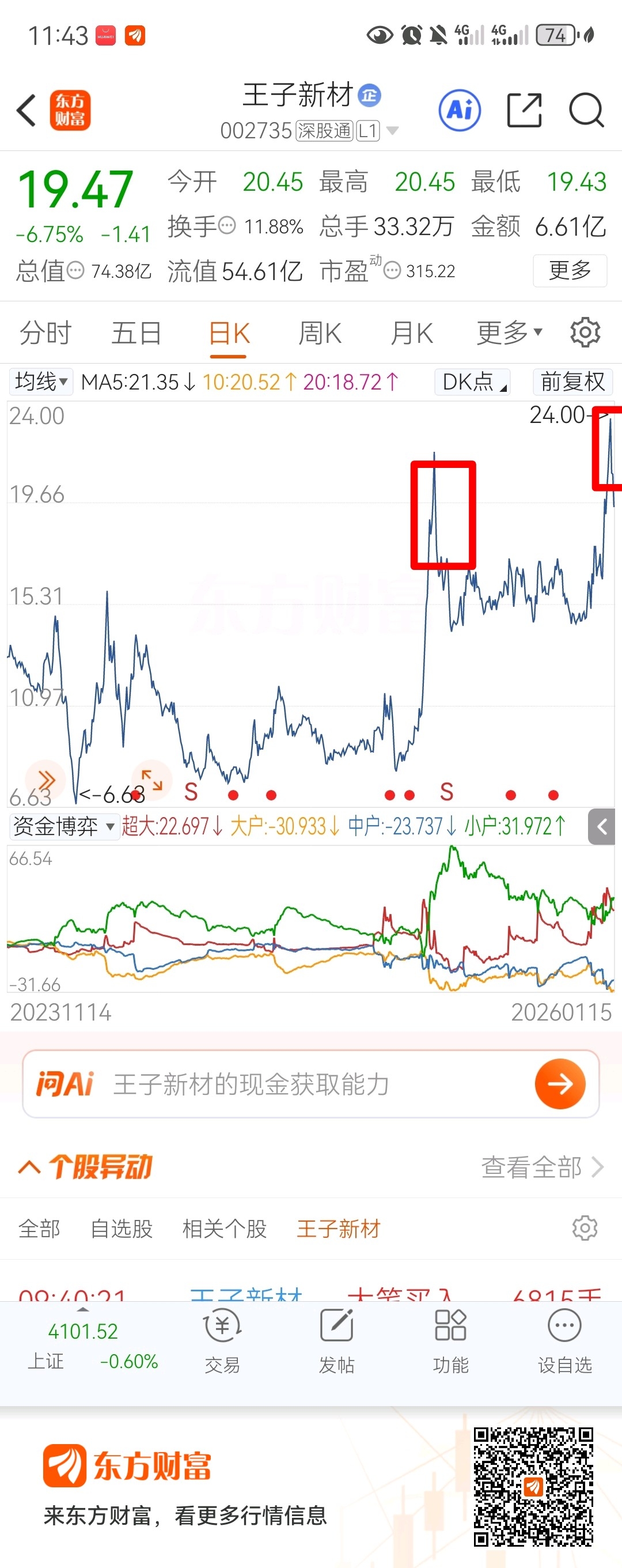 $王子新材(SZ002735)$ 继续两个月起步,昨天高点我清场离场,安心过年,保住肉了,开心