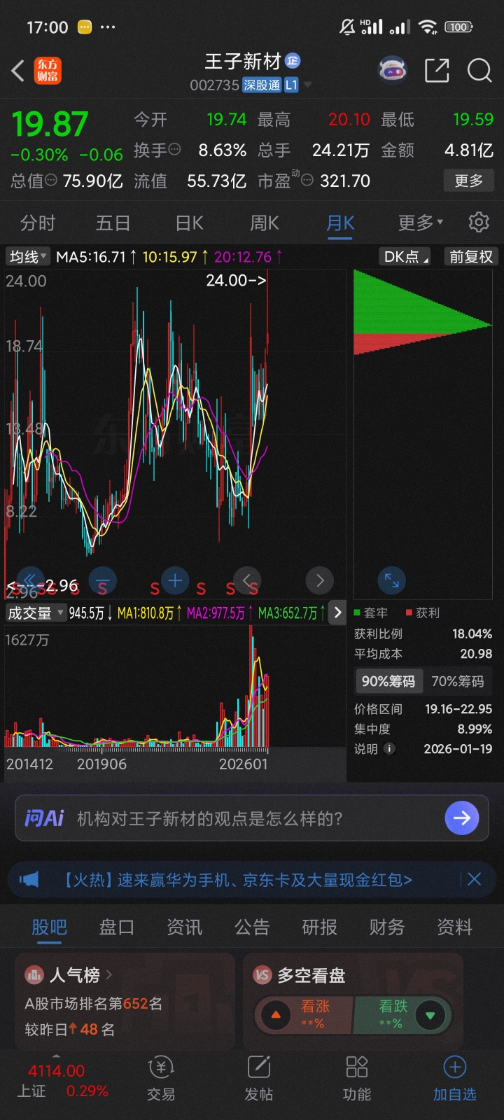 温馨提示: 1.根据《证券法》规定,禁止编造、传播虚假信息或者误导性信息,扰乱证券市场;2.用户在本社区发表的所有资料、言论等仅代表个人观点,与本网站立场无关,不对您构成任何投资建议。用户应基于自己的独立判断,自行决定证券投资并承担相应风险。《东方财富社区管理规定》