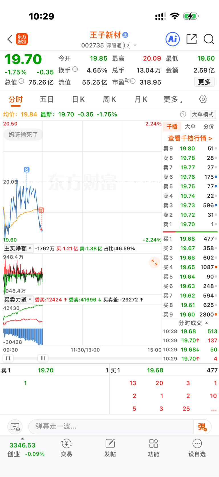 $王子新材(SZ002735)$ 只能每天这样慢慢玩了,十几个点的亏损,拿到明年再说吧