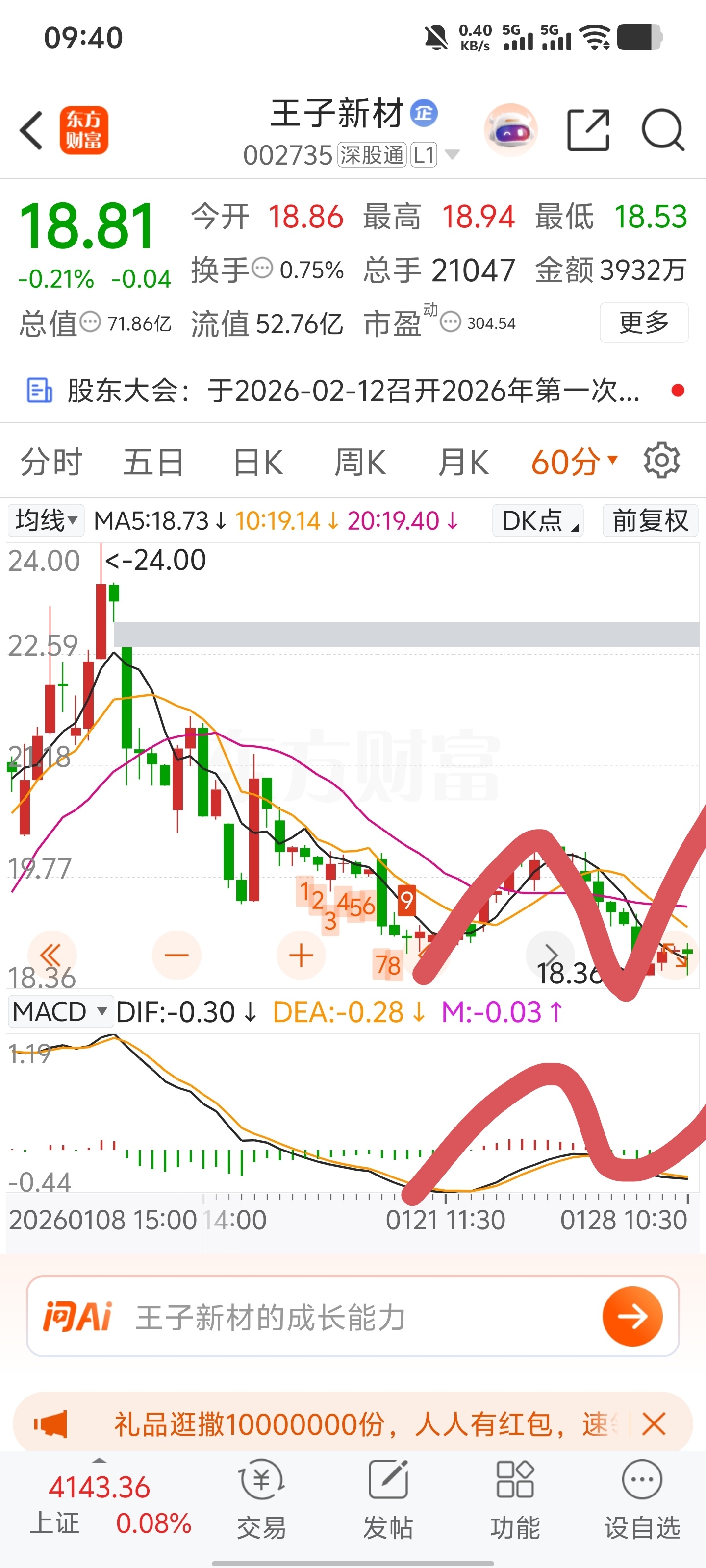 $王子新材(SZ002735)$ 底背离已成坐等起飞