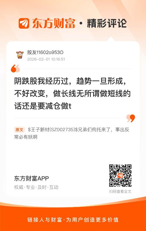 温馨提示: 1.根据《证券法》规定,禁止编造、传播虚假信息或者误导性信息,扰乱证券市场;2.用户在本社区发表的所有资料、言论等仅代表个人观点,与本网站立场无关,不对您构成任何投资建议。用户应基于自己的独立判断,自行决定证券投资并承担相应风险。《东方财富社区管理规定》