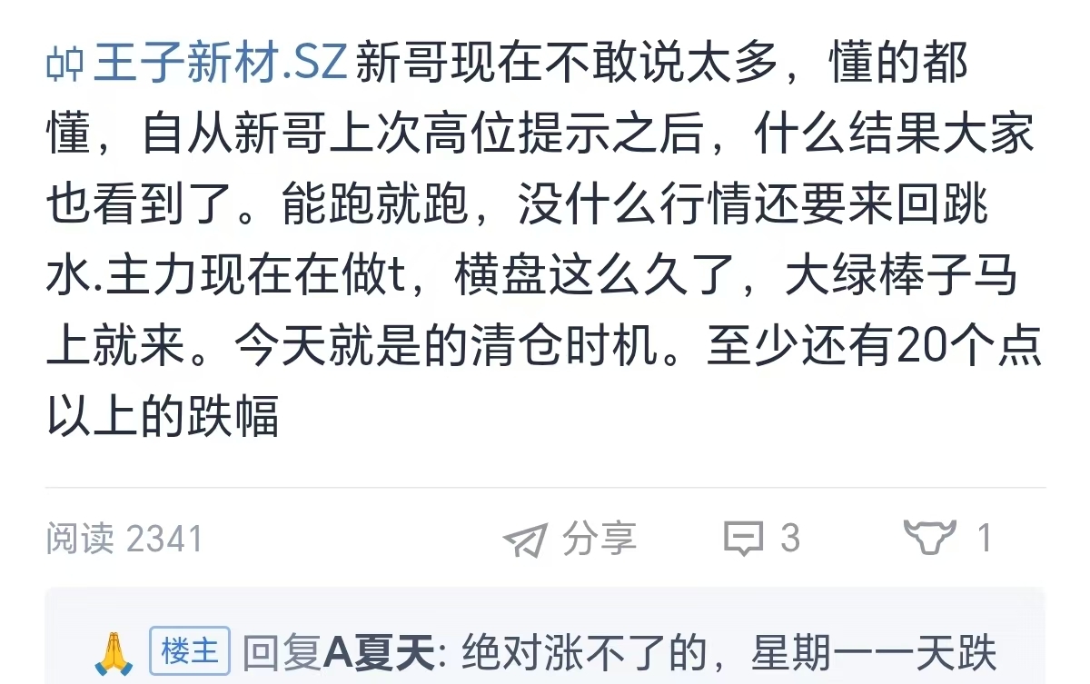完了完了完了,连股神都这么说,新哥真的特别准。每次提示完风险都是大跌特跌,完了完