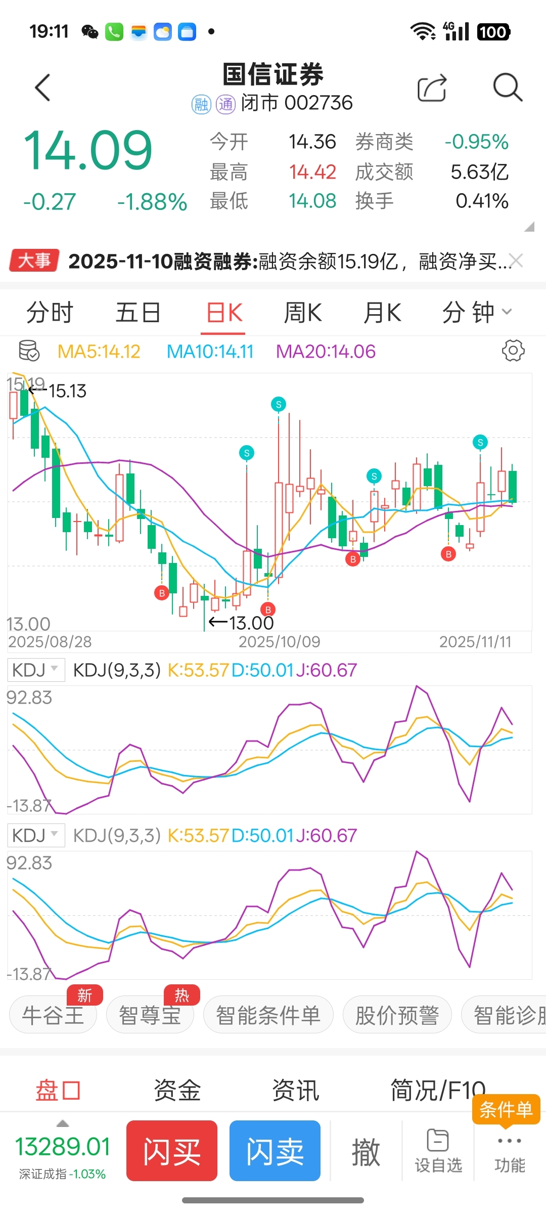 $国信证券(SZ002736)$ 看看吧,他应该还要调整,做了好几个T了,等13左右再回来试试