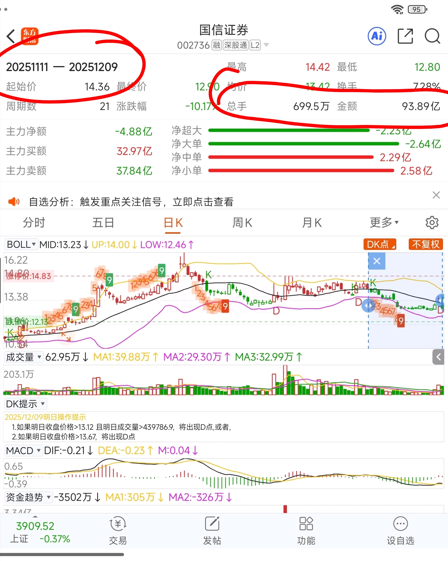 $国信证券(SZ002736)$ 本次大股东减持,完全是风狂的不计后果。计划在60个交易日的竞价期间,减持7400万股,平均每天123.333万股。从1111到今1209一个月,总成交量才699万手。7400万股如何在60个交易日竞价时间内减持?