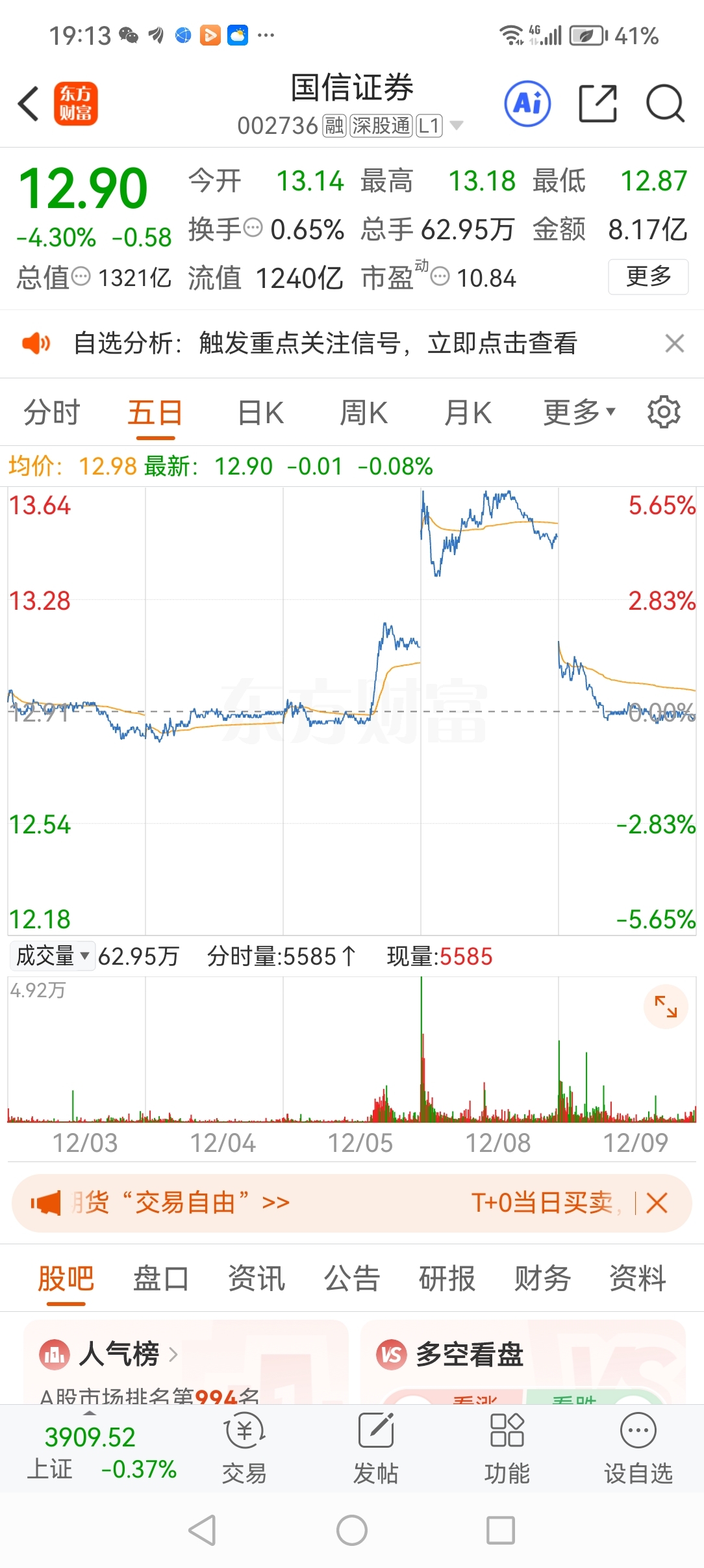 $国信证券(SZ002736)$ 昨天买的,今天挂孤岛上了。