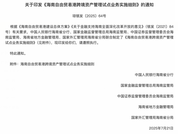 《海南自由贸易港跨境资产管理试点业务实施细则》,来源:国家金融监管总局官网