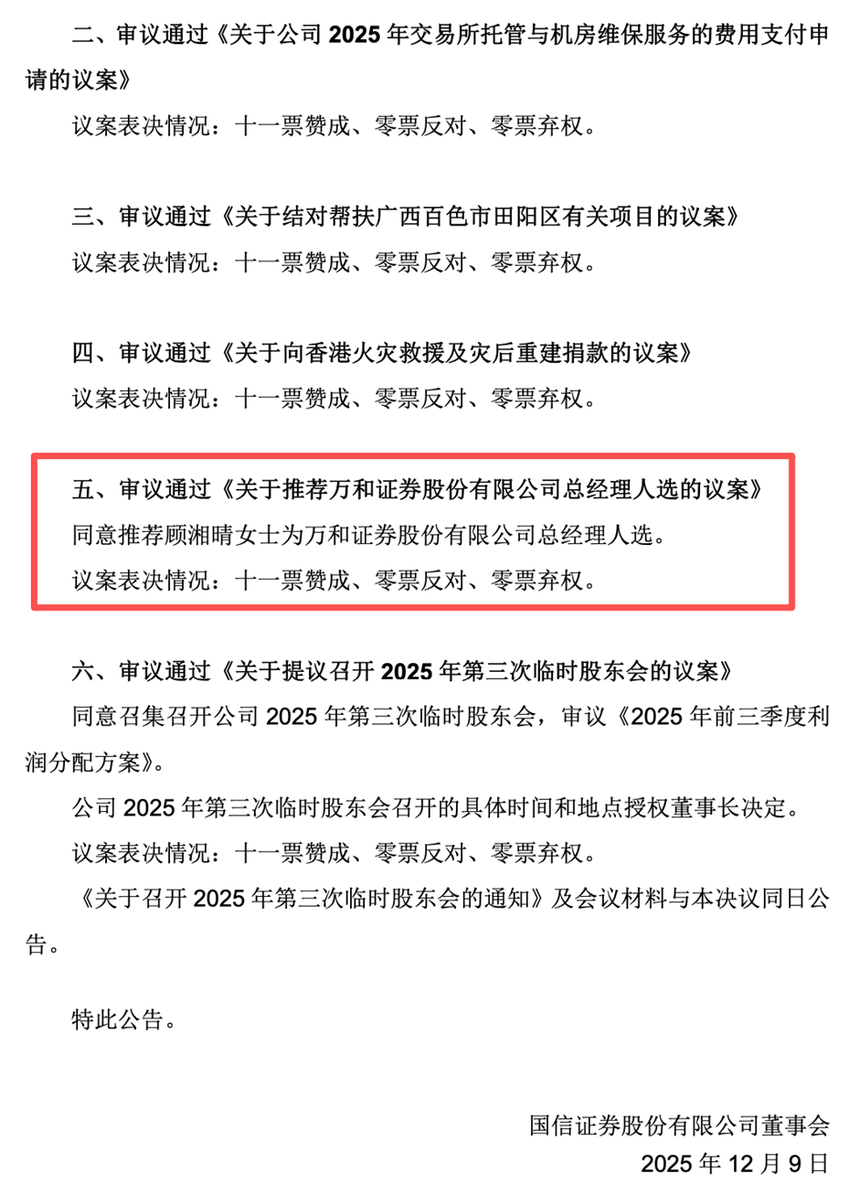 关于推荐万和证券推荐总经理人选的公告,来源:国信证券官网